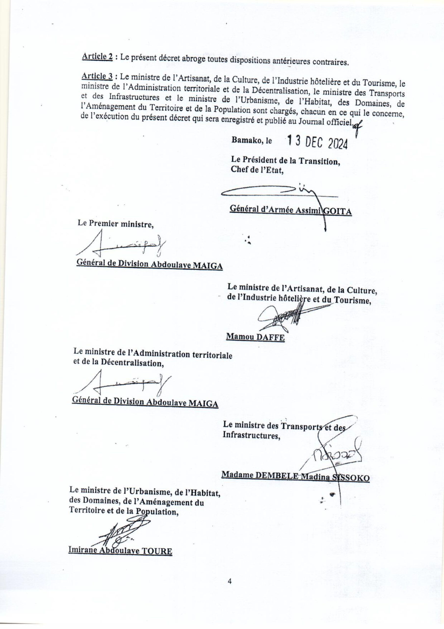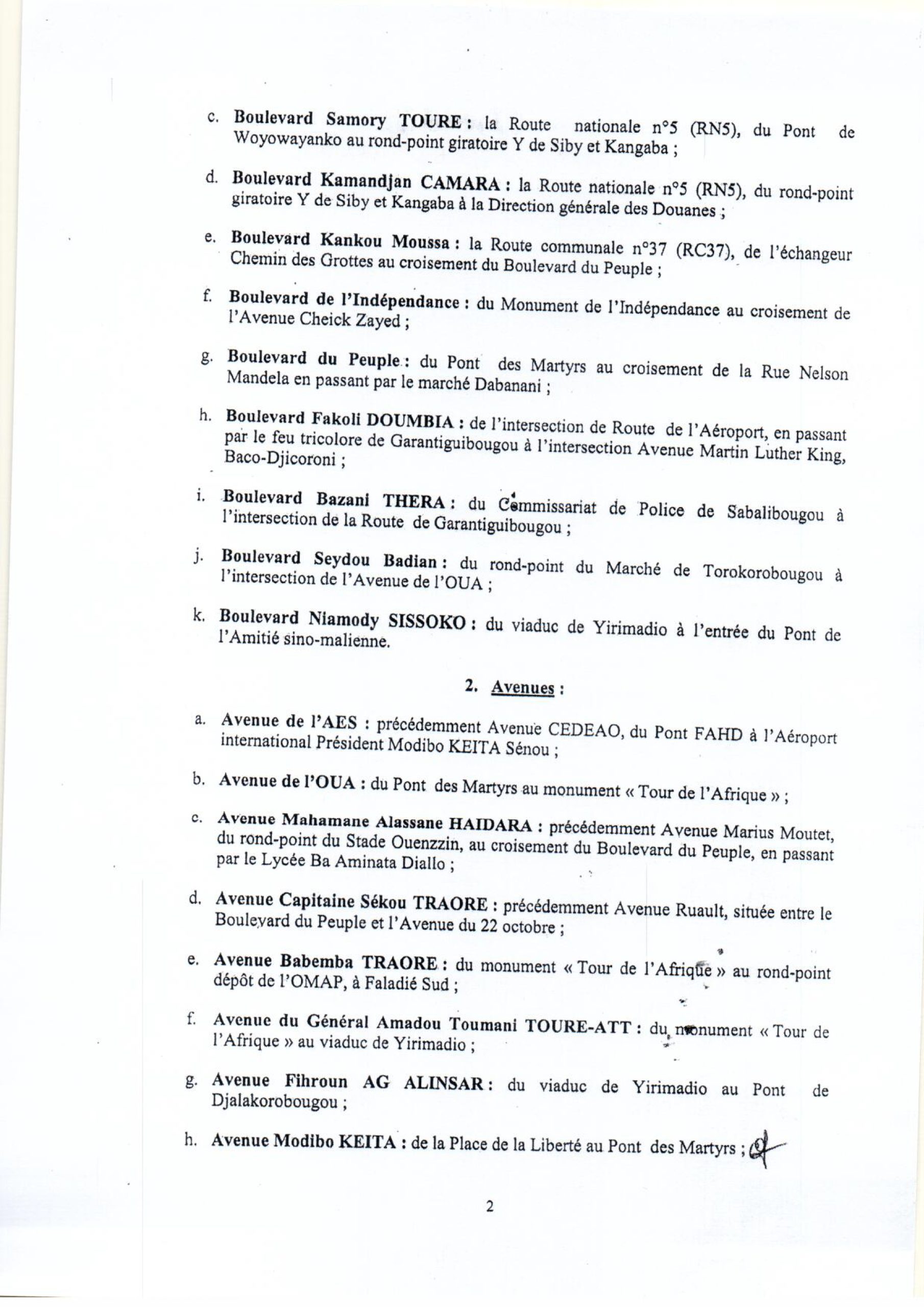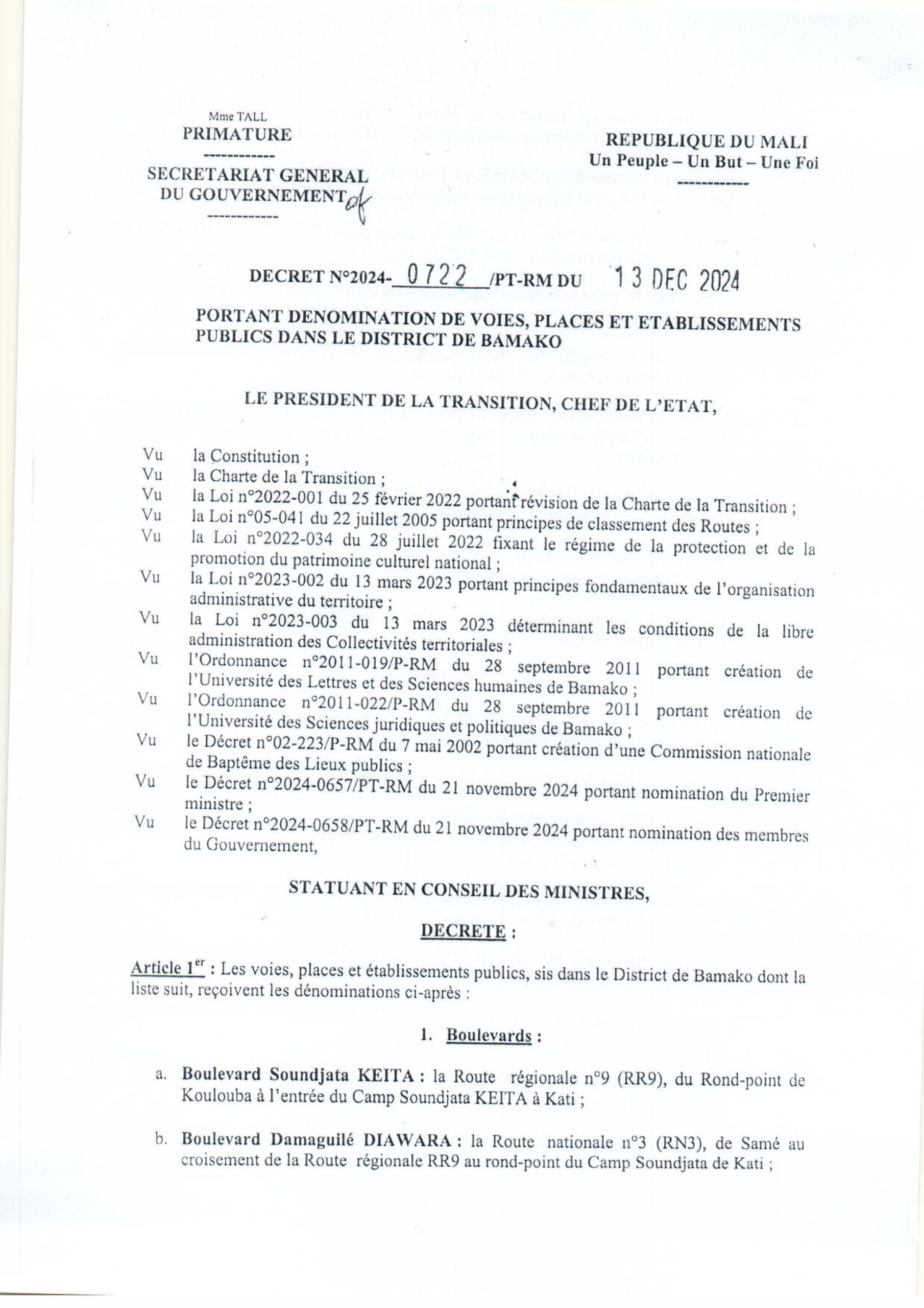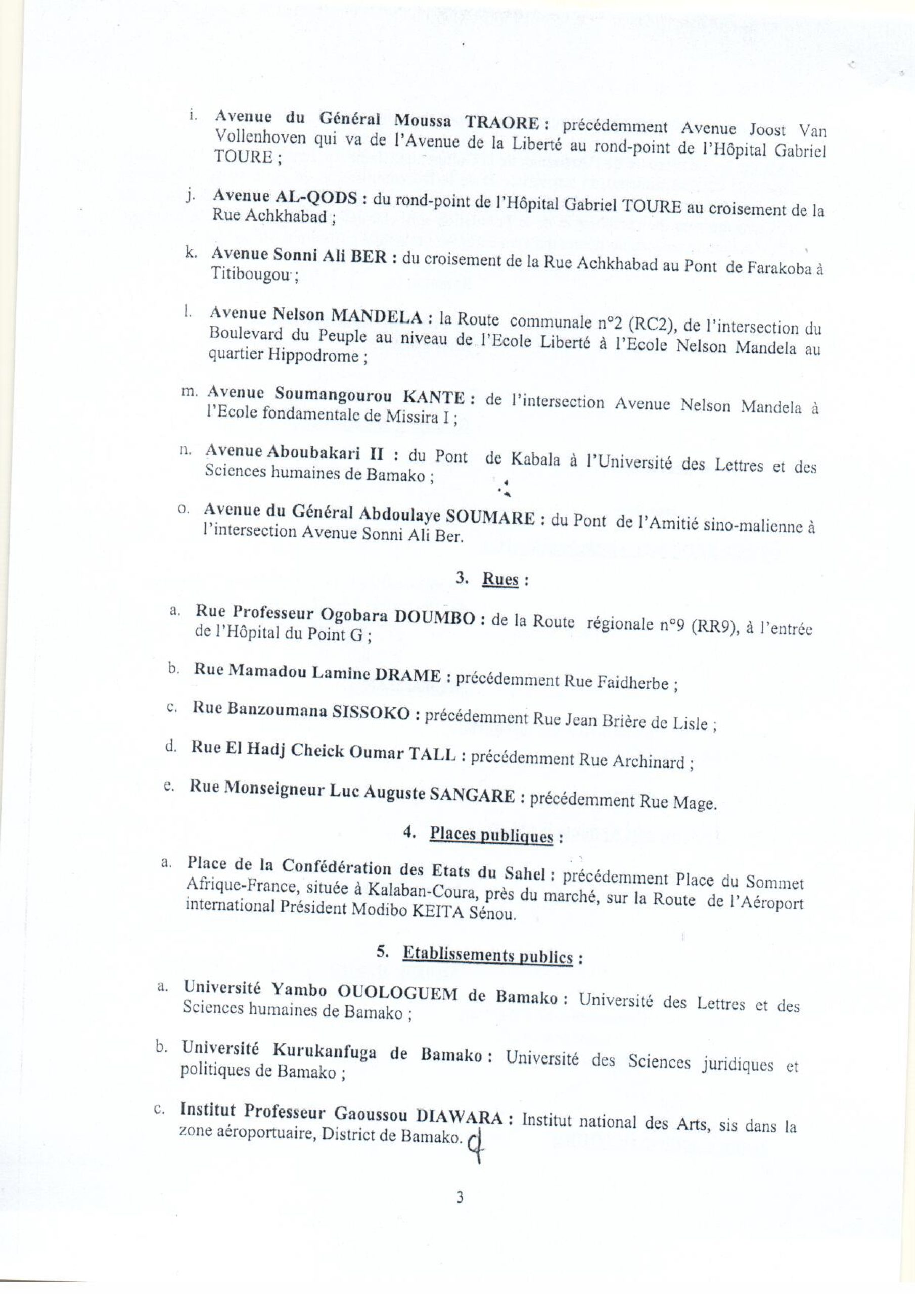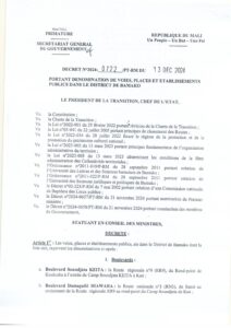 Actualités Mali: Décret portant dénomination de voies, de places et établissements publics du district de Bamako 18 décembre 2024 Laseconde.net 0 Comments